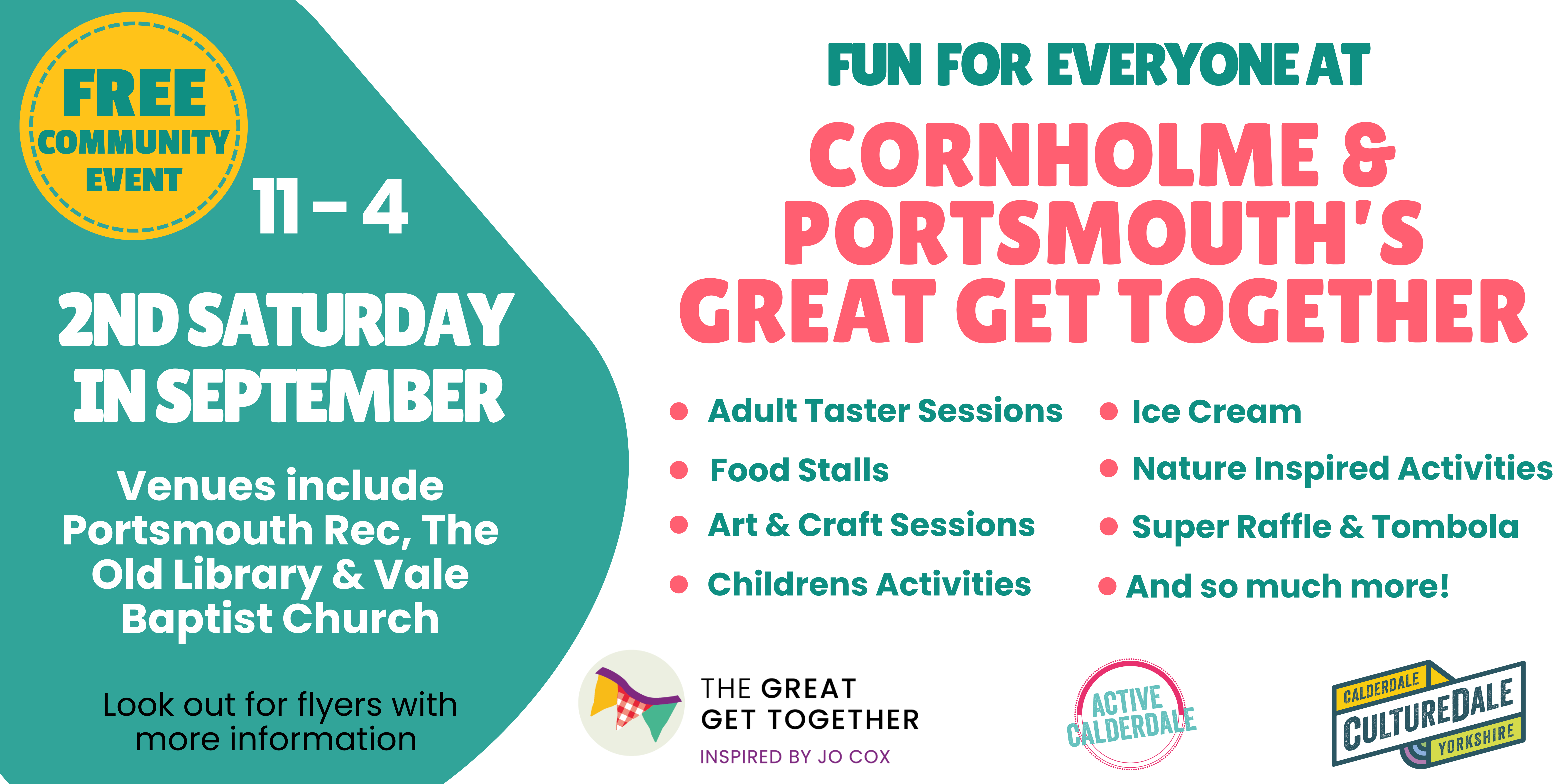 We were thrilled to secure funding from Culturedale towards a Great Get Together event in local villages Cornholme & Portsmouth, Todmorden. This was a vibrant community event that brought together neighbours, friends and families in a celebration of unity and local spirit. It was a huge success and people are looking forward to this being an annual event and we will be sure to get involved again next year!